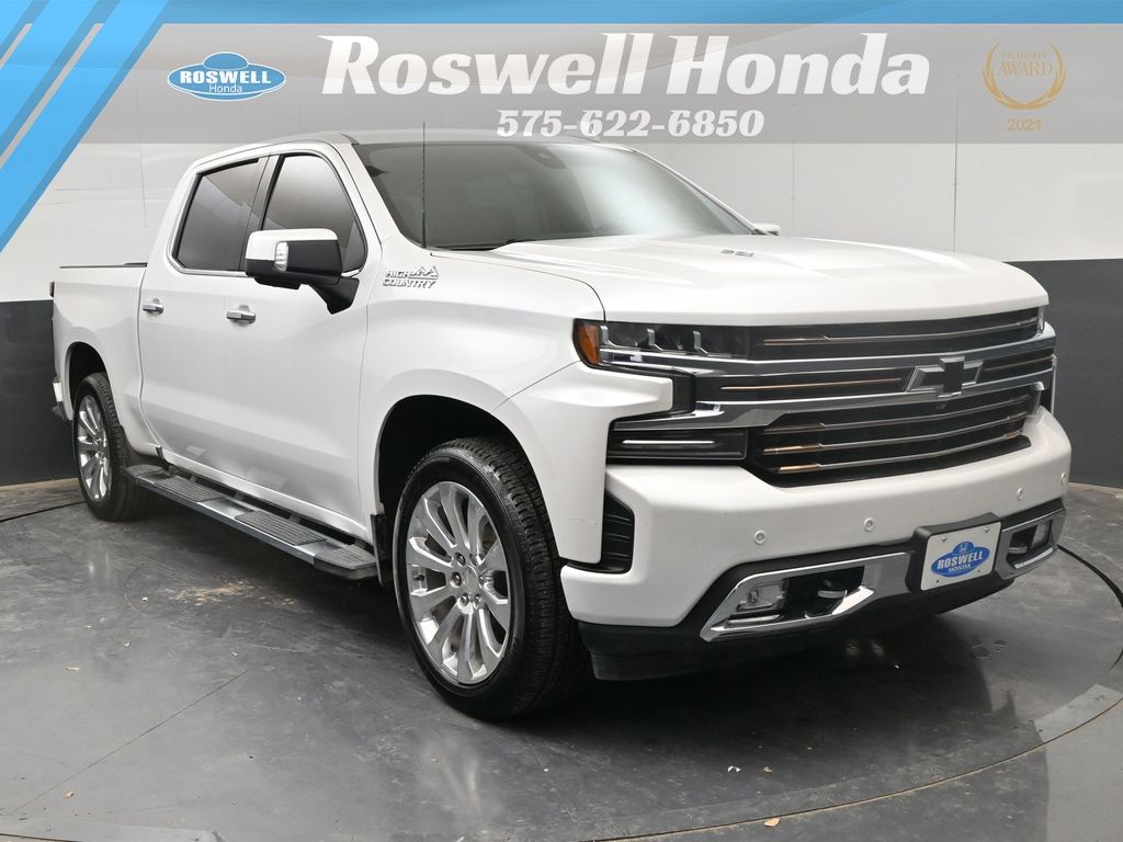Roswell Honda has been proudly serving Roswell, Artesia, Carlsbad and Southeastern New Mexico for over 20 years. For more information on this vehicle please stop by the dealership at 2177 West Second Street or call us at 575-622-6850. This 2021 Chevrolet Silverado 1500 High Country is loaded with the following Factory Options:High Country Deluxe (All-Weather Floor Liner (LPO) and Power Sunroof), Preferred Equipment Group 3LZ (10-Way Power Driver Seat w/Lumbar, 10-Way Power Passenger Seat Adjuster w/Lumbar, 12-Volt Rear Auxiliary Power Outlet, 120-Volt Bed Mounted Power Outlet, 120-Volt Instrument Panel Power Outlet, 4G LTE Wi-Fi Hot Spot Capable, 8" Driver Information Center, Advanced Trailering System, Auto-Dimming Inside Rear-View Mirror, Auto-Locking Rear Differential, Auxiliary External Transmission Oil Cooler, Bluetooth® For Phone, Chevrolet Connected Access Capable, Chevytec Spray-On Black Bedliner, Chrome Assist Steps, Chrome Grille, Chrome Recovery Hooks, Color-Keyed Carpeting Floor Covering, Compass, Deep-Tinted Glass, Driver Memory, Dual Exhaust w/Polished Outlets, Electric Rear-Window Defogger, Electrical Lock Control Steering Column, Electronic Cruise Control, Floor Mounted Center Console, Front Carpeted Floor Mats, Front LED Fog Lamps, HD Rear Vision Camera, Heated Driver & Front Outboard Passenger Seats, Heated Steering Wheel, Hitch Guidance w/Hitch View, Integrated Trailer Brake Controller, Keyless Open & Start, Lane Change Alert w/Side Blind Zone Alert, Leather Wrapped Steering Wheel, LED Cargo Area Lighting, Manual Tilt/Telescoping Steering Column, OnStar & Chevrolet Connected Services Capable, Outside Heated Power-Adjustable Mirrors, Painted Mirror Caps, Power Door Locks, Power Front Passenger Windows w/Express Up/Down, Power Front Windows w/Driver Express Up/Down, Power Rear Windows w/Express Down, Power Sliding Rear Window w/Rear Defogger, Power Tailgate, Rear Carpeted Floor Mats, Rear Cross Traffic Alert, Rear Dual USB Charging-Only Ports, Rear Wheelhouse Liners, Remote Vehicle Starter System, SiriusXM w/360L, Standard Tailgate, Steering Wheel Audio Controls, Theft Deterrent System (Unauthorized Entry), Ultrasonic Front & Rear Park Assist, Universal Home Remote, Ventilated Driver & Front Passenger Seats, Wireless Charging, and Wireless Phone Projection), Safety Package II (Adaptive Cruise Control, Automatic Emergency Braking, Following Distance Indicator, Forward Collision Alert, Front Pedestrian Braking, IntelliBeam Automatic High Beam On/Off, Lane Keep Assist w/Lane Departure Warning, and Safety Alert Seat), Technology Package (15" Diagonal Multicolor Head-Up Display, Bed View Camera, HD Surround Vision w/2 Trailer View Camera Provisions, and Rear Camera Mirror), Trailering Package (Hitch Guidance), Up-Level Rear Seat w/Storage Package, 170 Amp Alternator, 2nd Row Heated Outboard Seats, 3.23 Rear Axle Ratio, 4-Wheel Disc Brakes, 7 Speakers, ABS brakes, Adaptive Ride Control Suspension, Air Conditioning, Alloy wheels, AM/FM radio: SiriusXM with 360L, Apple CarPlay/Android Auto, Auto-dimming door mirrors, Auto-dimming Rear-View mirror, Automatic temperature control, Brake assist, Bumpers: body-color, Delay-off headlights, Driver door bin, Driver vanity mirror, Dual front impact airbags, Dual front side impact airbags, Electronic Stability Control, Front anti-roll bar, Front Black Bowtie Emblem (LPO), Front Bucket Seats, Front Center Armrest, Front dual zone A/C, Front fog lights, Front License Plate Kit, Front reading lights, Front wheel independent suspension, Fully automatic headlights, Garage door transmitter, Heated door mirrors, Heated front seats, Heated steering wheel, Heavy Duty Suspension, Illuminated entry, Low tire pressure warning, Memory seat, Navigation System, Occupant sensing airbag, Outside temperature display, Overhead airbag, Overhead console