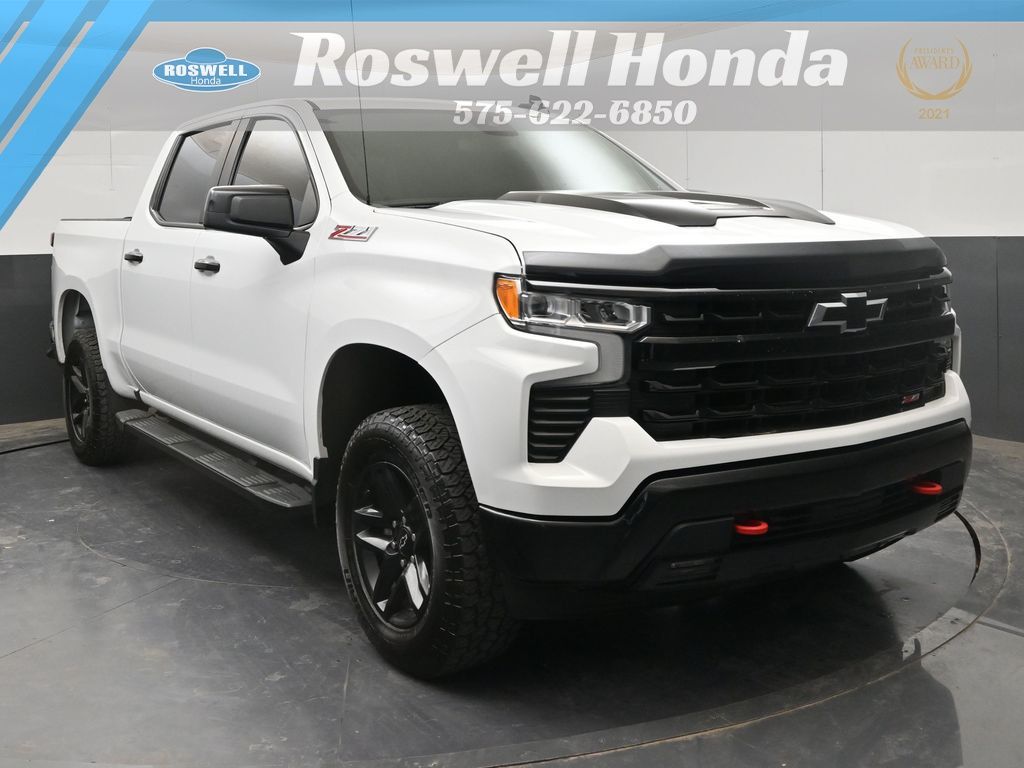 Roswell Honda has been proudly serving Roswell, Artesia, Carlsbad and Southeastern New Mexico for over 20 years. For more information on this vehicle please stop by the dealership at 2177 West Second Street or call us at 575-622-6850. This 2023 Chevrolet Silverado 1500 LT Trail Boss is loaded with the following Factory Options:Convenience Package (10-Way Power Driver Seat w/Lumbar, 120-Volt Bed Mounted Power Outlet, 120-Volt Instrument Panel Power Outlet, Dual Rear USB Ports (Charge Only), Dual-Zone Automatic Climate Control, Electric Rear-Window Defogger, Heated Driver & Front Outboard Passenger Seats, Heated Steering Wheel, Keyless Open & Start, Remote Vehicle Starter System, Theft Deterrent System (Unauthorized Entry), and Wrapped Steering Wheel), Preferred Equipment Group 2LT (12.3" Multicolor Reconfigurable Digital Display, 6-Speaker Audio System, All-Weather Floor Liner (LPO) (AAK), Auto-Locking Rear Differential, Bluetooth® For Phone, Chevrolet Connected Access Capable, Color-Keyed Carpeting Floor Covering, Compass, Deep-Tinted Glass, Electrical Steering Column Lock, Electronic Cruise Control, EZ Lift Power Lock & Release Tailgate, Front LED Fog Lamps, HD Rear Vision Camera, Heated Power-Adjustable Outside Mirrors, High Gloss Black Mirror Caps, Inside Rear-View Mirror w/Tilt, LED Cargo Area Lighting, OnStar & Chevrolet Connected Services Capable, Performance Red Recovery Hooks, Power Front Windows w/Driver Express Up/Down, Power Front Windows w/Passenger Express Down, Power Rear Windows w/Express Down, Rear 60/40 Folding Bench Seat (Folds Up), SiriusXM w/360L, Standard Tailgate, Steering Wheel Audio Controls, Wi-Fi Hot Spot Capable, and Wireless Phone Projection), Protection Package (Chevytec Spray-On Black Bedliner and Rear Wheelhouse Liners), Suspension Package (Heavy-Duty Air Filter and Hill Descent Control), Trailering Package (Hitch Guidance), 170 Amp Alternator, 2 USB Data Ports, 220 Amp Alternator, 4-Wheel Disc Brakes, 40/20/40 Front Split-Bench Seat, 6 Speakers, 6" Rectangular Black Tubular Assist Steps (LPO), ABS brakes, Air Conditioning, Alloy wheels, AM/FM radio: SiriusXM with 360L, Apple CarPlay/Android Auto, Auto High-beam Headlights, Automatic Emergency Braking, Automatic temperature control, Auxiliary External Transmission Oil Cooler, Brake assist, Cloth Seat Trim, Delay-off headlights, Driver door bin, Driver vanity mirror, Dual Exhaust w/Polished Outlets, Dual front impact airbags, Dual front side impact airbags, Electronic Stability Control, Electronic Transmission Range Selector Shifter, External Engine Oil Cooler, Floor Mounted Center Console, Following Distance Indicator, Forward Collision Alert, Front anti-roll bar, Front Bucket Seats, Front Center Armrest w/Storage, Front dual zone A/C, Front fog lights, Front License Plate Kit, Front Pedestrian Braking, Front reading lights, Front wheel independent suspension, Fully automatic headlights, Heated door mirrors, Heated front seats, Heated steering wheel, Illuminated entry, Integrated Trailer Brake Controller, IntelliBeam Automatic High Beam On/Off, Lane Keep Assist w/Lane Departure Warning, Low tire pressure warning, Not Equipped w/Steering Column Lock, Occupant sensing airbag, Outside temperature display, Overhead airbag, Overhead console, Panic alarm, Passenger door bin, Passenger vanity mirror, Power door mirrors, Power driver seat, Power steering, Power windows, Premium audio system: Chevrolet Infotainment 3 Premium, Radio data system, Radio: Chevrolet Infotainment 3 Premium System, Rear reading lights, Rear step bumper, Rear window defroster, Remote keyless entry, Security system, Speed control, Speed-sensing steering, Split folding rear seat, Steering wheel mounted audio controls, Tachometer, Telescoping steering wheel, Tilt steering wheel, Traction control, Trip computer, Variab