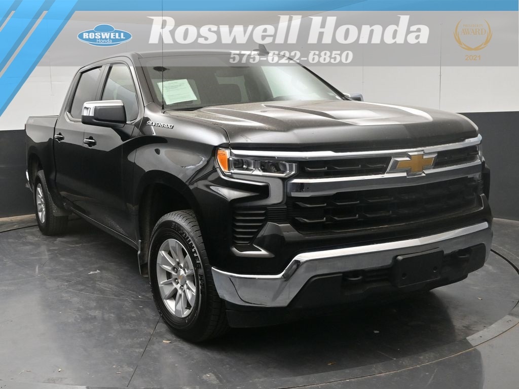 Roswell Honda has been proudly serving Roswell, Artesia, Carlsbad and Southeastern New Mexico for over 20 years. For more information on this vehicle please stop by the dealership at 2177 West Second Street or call us at 575-622-6850. This 2025 Chevrolet Silverado 1500 LT is loaded with the following Factory Options:Convenience Package (10-Way Power Driver Seat w/Lumbar, 120-Volt Bed Mounted Power Outlet, 120-Volt Interior Power Outlet, Dual Rear USB Ports (Charge Only), Dual-Zone Automatic Climate Control, Heated Driver & Front Outboard Passenger Seats, Heated Steering Wheel, Keyless Open & Start, LED Cargo Area Lighting, Manual Tilt/Telescoping Steering Column, and Wrapped Steering Wheel), Preferred Equipment Group 1LT (12.3" Multicolor Reconfigurable Digital Display, All-Star Edition, Auto-Locking Rear Differential, Bluetooth® For Phone, Chrome Mirror Caps, Color-Keyed Carpeting Floor Covering, Deep-Tinted Glass, Electronic Cruise Control, EZ Lift Power Lock & Release Tailgate, Front Frame-Mounted Black Recovery Hooks, Front Rubberized Vinyl Floor Mats, HD Rear Vision Camera, Heated Power-Adjustable Outside Mirrors, Inside Rear-View Mirror w/Tilt, Integrated Trailer Brake Controller, OnStar Services Capable, Power Front Windows w/Driver Express Up/Down, Power Front Windows w/Passenger Express Down, Power Rear Windows w/Express Down, Rear 60/40 Folding Bench Seat (Folds Up), Rear Rubberized-Vinyl Floor Mats, SiriusXM w/360L Trial Subscription, Standard Tailgate, Steering Wheel Audio Controls, Teen Driver, Tire Pressure Monitoring System, and Wi-Fi Hot Spot Capable), Remote Start Package (Electric Rear-Window Defogger, Remote Vehicle Starter System, and Theft Deterrent System (Unauthorized Entry)), Standard Suspension Package, Trailering Package (Hitch Guidance), 170 Amp Alternator, 220 Amp Alternator, 3.23 Rear Axle Ratio, 4-Wheel Disc Brakes, 40/20/40 Front Split-Bench Seat, 6 Speakers, 6-Speaker Audio System, ABS brakes, Air Conditioning, Alloy wheels, AM/FM radio: SiriusXM with 360L, Apple CarPlay/Android Auto, Auto High-beam Headlights, Automatic Emergency Braking, Automatic temperature control, Auxiliary External Transmission Oil Cooler, Brake assist, Bumpers: chrome, Cloth Seat Trim, Compass, Delay-off headlights, Driver door bin, Driver vanity mirror, Dual front impact airbags, Dual front side impact airbags, Electronic Stability Control, Emergency communication system: OnStar, External Engine Oil Cooler, Following Distance Indicator, Forward Collision Alert, Front anti-roll bar, Front Center Armrest w/Storage, Front dual zone A/C, Front License Plate Kit, Front Pedestrian Braking, Front reading lights, Front wheel independent suspension, Fully automatic headlights, Heated door mirrors, Heated front seats, Heated steering wheel, Illuminated entry, IntelliBeam Automatic High Beam On/Off, Lane Keep Assist w/Lane Departure Warning, Low tire pressure warning, Occupant sensing airbag, Outside temperature display, Overhead airbag, Overhead console, Panic alarm, Passenger door bin, Passenger vanity mirror, Power door mirrors, Power driver seat, Power steering, Power windows, Premium audio system: Chevrolet Infotainment 3 Premium, Radio data system, Radio: Chevrolet Infotainment 3 Premium System, Rear reading lights, Rear step bumper, Rear window defroster, Remote keyless entry, Security system, Speed control, Speed-sensing steering, Split folding rear seat, Steering wheel mounted audio controls, Tachometer, Telescoping steering wheel, Tilt steering wheel, Traction control, Trip computer, Variably intermittent wipers, Voltmeter, and Wheels: 17" x 8" Bright Silver Painted Aluminum.