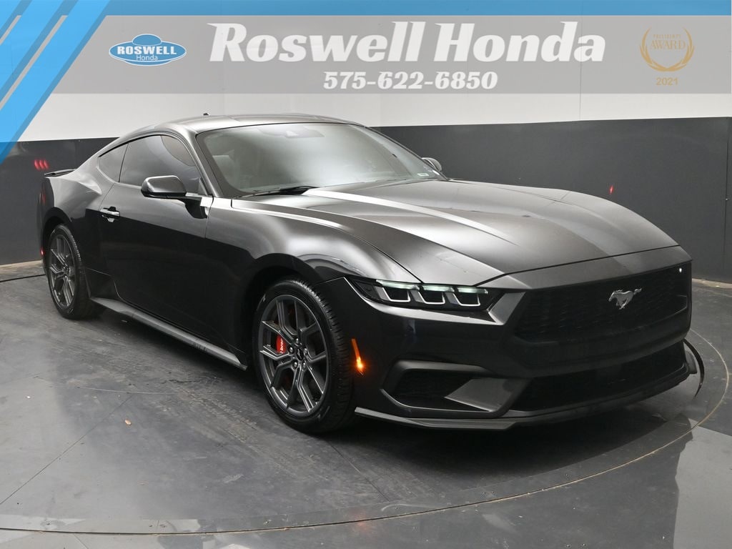 Roswell Honda has been proudly serving Roswell, Artesia, Carlsbad and Southeastern New Mexico for over 20 years. For more information on this vehicle please stop by the dealership at 2177 West Second Street or call us at 575-622-6850. This 2024 Ford Mustang EcoBoost is loaded with the following Factory Options:2.3L High Performance Package (Wheels: 19" x 9" Carbonized Gray-Painted Aluminum), 4-Wheel Disc Brakes, ABS brakes, Air Conditioning, Alloy wheels, AM/FM Stereo, Auto High-beam Headlights, Automatic temperature control, Brake assist, Bumpers: body-color, Compass, Delay-off headlights, Driver door bin, Driver vanity mirror, Dual front impact airbags, Dual front side impact airbags, Electronic Stability Control, Emergency communication system: 911 Assist, Exterior Parking Camera Rear, Four wheel independent suspension, Front anti-roll bar, Front Bucket Seats, Front Center Armrest, Front reading lights, Fully automatic headlights, Illuminated entry, Knee airbag, Leather Shift Knob, Low tire pressure warning, Occupant sensing airbag, Outside temperature display, Overhead airbag, Overhead console, Panic alarm, Passenger door bin, Passenger vanity mirror, Power door mirrors, Power steering, Power windows, Radio data system, Rain sensing wipers, Rear anti-roll bar, Rear Parking Sensors, Rear window defroster, Red Painted Brake Calipers w/White Logo, Remote keyless entry, Speed control, Speed-sensing steering, Speed-Sensitive Wipers, Split folding rear seat, Sport steering wheel, Steering wheel mounted audio controls, SYNC 4.0 QNX, Tachometer, Telescoping steering wheel, Tilt steering wheel, Traction control, Trip computer, Variably intermittent wipers, Voltmeter, and Wheels: 18" x 8" Machined-Face Aluminum.
