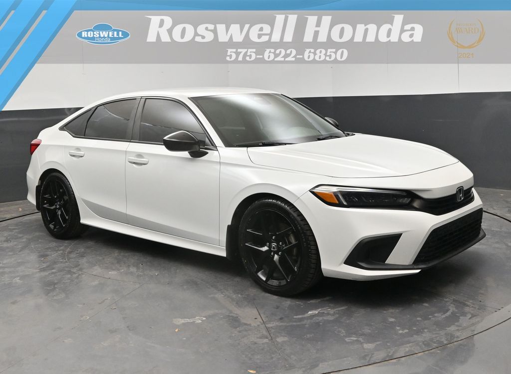 Roswell Honda has been proudly serving Roswell, Artesia, Carlsbad and Southeastern New Mexico for over 20 years. For more information on this vehicle please stop by the dealership at 2177 West Second Street or call us at 575-622-6850. This 2022 Honda Civic Sport is loaded with the following Factory Options:4-Wheel Disc Brakes, 8 Speakers, ABS brakes, Adaptive Cruise Control: Adaptive Cruise Control (ACC) with Low-Speed Follow, Air Conditioning, Alloy wheels, AM/FM radio, Apple CarPlay/Android Auto, Auto High-beam Headlights, Automatic temperature control, Brake assist, Bumpers: body-color, Cloth Seat Trim, Delay-off headlights, Driver door bin, Driver vanity mirror, Dual front impact airbags, Dual front side impact airbags, Electronic Stability Control, Emergency communication system: HondaLink, Exterior Parking Camera Rear, Forward collision: Collision Mitigation Braking System (CMBS) + FCW mitigation, Four wheel independent suspension, Front anti-roll bar, Front Bucket Seats, Front Center Armrest, Front reading lights, Fully automatic headlights, Illuminated entry, Knee airbag, Leather Shift Knob, Leather steering wheel, Low tire pressure warning, Occupant sensing airbag, Outside temperature display, Overhead airbag, Panic alarm, Passenger door bin, Passenger vanity mirror, Power door mirrors, Power steering, Power windows, Radio data system, Radio: 180-Watt AM/FM Audio System, Rear anti-roll bar, Rear side impact airbag, Rear window defroster, Remote keyless entry, Security system, Speed control, Speed-sensing steering, Steering wheel mounted audio controls, Tachometer, Telescoping steering wheel, Tilt steering wheel, Traction control, Trip computer, and Wheels: 18" Gloss Black Alloy.