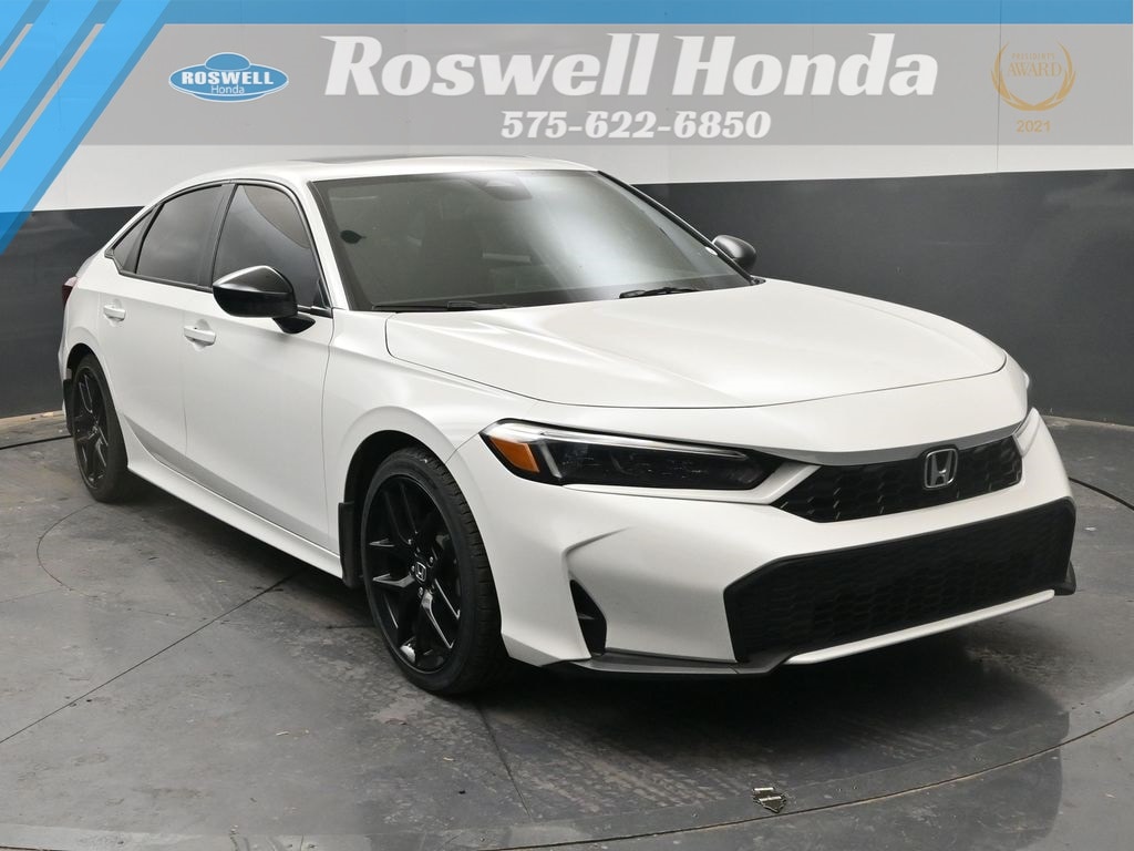 Roswell Honda has been proudly serving Roswell, Artesia, Carlsbad and Southeastern New Mexico for over 20 years. For more information on this vehicle please stop by the dealership at 2177 West Second Street or call us at 575-622-6850. This 2025 Honda Civic Hybrid Sport is loaded with the following Factory Options:4-Wheel Disc Brakes, 8 Speakers, ABS brakes, Adaptive Cruise Control: Adaptive Cruise Control (ACC) with Low-Speed Follow, Air Conditioning, Alloy wheels, AM/FM radio, Apple CarPlay/Android Auto, Auto High-beam Headlights, Automatic temperature control, Blind Spot Information (BSI) System warning, Brake assist, Bumpers: body-color, Cloth/Leatherette Seat Trim, Delay-off headlights, Driver door bin, Driver vanity mirror, Dual front impact airbags, Dual front side impact airbags, Electronic Stability Control, Emergency communication system: HondaLink, Exterior Parking Camera Rear, Four wheel independent suspension, Front anti-roll bar, Front Bucket Seats, Front Center Armrest, Front dual zone A/C, Front reading lights, Fully automatic headlights, Heated door mirrors, Heated Front Bucket Seats, Heated front seats, Illuminated entry, Knee airbag, Leather Shift Knob, Leather steering wheel, Low tire pressure warning, Occupant sensing airbag, Outside temperature display, Overhead airbag, Panic alarm, Passenger door bin, Passenger vanity mirror, Power door mirrors, Power moonroof, Power steering, Power windows, Radio data system, Radio: 180-Watt Audio System, Rear anti-roll bar, Rear seat center armrest, Rear side impact airbag, Rear window defroster, Remote keyless entry, Security system, Speed control, Speed-sensing steering, Split folding rear seat, Steering wheel mounted audio controls, Tachometer, Telescoping steering wheel, Tilt steering wheel, Traction control, Trip computer, Variably intermittent wipers, and Wheels: 18" Gloss Black Alloy.