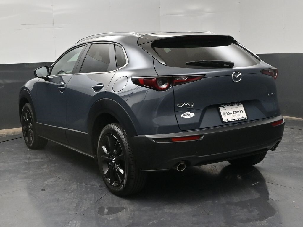 Roswell Honda has been proudly serving Roswell, Artesia, Carlsbad and Southeastern New Mexico for over 20 years. For more information on this vehicle please stop by the dealership at 2177 West Second Street or call us at 575-622-6850. This 2024 Mazda CX-30 2.5 S Carbon Edition is loaded with the following Factory Options:4-Wheel Disc Brakes, 4.095 Axle Ratio, 8 Speakers, ABS brakes, Air Conditioning, Alloy wheels, AM/FM radio, AppLink/Apple CarPlay and Android Auto, Auto High-beam Headlights, Automatic temperature control, Brake assist, Bumpers: body-color, Compass, Delay-off headlights, Driver door bin, Driver vanity mirror, Dual front impact airbags, Dual front side impact airbags, Electronic Stability Control, Emergency communication system: Mazda Connected Services (3-year complimentary trial included), Exterior Parking Camera Rear, Front anti-roll bar, Front Bucket Seats, Front Center Armrest, Front dual zone A/C, Front reading lights, Front wheel independent suspension, Fully automatic headlights, Heated door mirrors, Heated Front Bucket Seats, Heated front seats, Illuminated entry, Knee airbag, Leather Seat Trim, Leather Shift Knob, Leather steering wheel, Low tire pressure warning, MAZDA CONNECT Infotainment System, Memory seat, Occupant sensing airbag, Outside temperature display, Overhead airbag, Overhead console, Panic alarm, Passenger door bin, Passenger vanity mirror, Power door mirrors, Power driver seat, Power moonroof, Power steering, Power windows, Radio data system, Radio: AM/FM/HD Audio System, Rain sensing wipers, Rear seat center armrest, Rear side impact airbag, Rear window defroster, Rear window wiper, Remote keyless entry, Speed control, Speed-sensing steering, Split folding rear seat, Spoiler, Steering wheel mounted audio controls, Tachometer, Telescoping steering wheel, Tilt steering wheel, Traction control, Trip computer, Turn signal indicator mirrors, Variably intermittent wipers, and Wheels: 18" x 7J Aluminum Alloy.