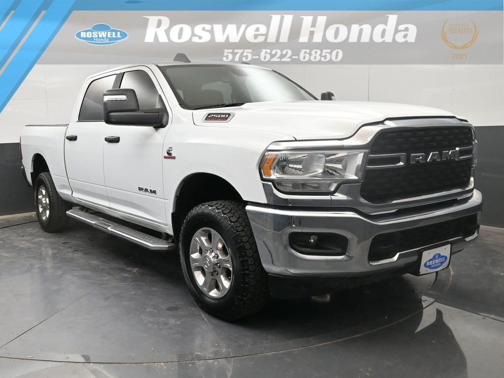 Roswell Honda has been proudly serving Roswell, Artesia, Carlsbad and Southeastern New Mexico for over 20 years. For more information on this vehicle please stop by the dealership at 2177 West Second Street or call us at 575-622-6850. This 2024 Ram 2500 Big Horn is loaded with the following Factory Options:Level 1 Equipment Group (2 Way Rear Headrest Seat, 2nd Row In Floor Storage Bins, 4 Way Front Headrests, 40/20/40 Split Bench Seat, 4G LTE Wi-Fi Hot Spot, 8.4" Touchscreen Display, Apple CarPlay, Auto Power-Folding Mirrors, Big Horn IP Badge, Black Exterior Mirrors, Bluetooth Handsfree Phone & Audio, Center Hub, Connectivity - US/Canada, Dual Glove Boxes, Exterior Mirrors Courtesy Lamps, Exterior Mirrors w/Heating Element, Exterior Mirrors w/Supplemental Signals, Foam Bottle Insert (Door Trim Panel), Footwell Courtesy Lamp, For Details, Visit DriveUconnect.com, For More Info, Call 800-643-2112, Forward & Reverse Utility Lights, Front Armrest w/Cupholders, Front Center Seat Cushion Storage, Front Fog Lamps, Front Seat Back Map Pockets, Global Telematics Box Module (TBM), Glove Box Lamp, Google Android Auto, GPS Antenna Input, Integrated Center Stack Radio, Integrated Voice Command w/Bluetooth, Leather Wrapped Steering Wheel, Locking Lower Glove Box, Manual Adjust 4-Way Front Passenger Seat, Mirror Running Lights, Power 2-Way Driver Lumbar Adjust, Power Adjust 8-Way Driver Seat, Power Adjust Mirrors, Power Adjustable Convex Aux Mirrors, Power Heated Fold Telescope Mirrors, Power Telescoping Mirrors, Rear 60/40 Folding Seat, Rear Dome w/On/Off Switch Lamp, Remote USB Port - Charge Only, Selectable Tire Fill Alert, SiriusXM Radio Service, SiriusXM Satellite Radio, Steering Wheel Mounted Audio Controls, Storage Tray, and Wheels: 18" x 8.0" Polished Aluminum), Quick Order Package 2HZ Big Horn, 3.73 Axle Ratio, 4-Wheel Disc Brakes, 6 Speakers, ABS brakes, Active Noise Control System, Air Conditioning, Brake assist, Bumpers: chrome, Center Stack Storage Drawer, Chrome Flat Cab-Length Side Steps, Cloth 40/20/40 Bench Seat, Compass, Delay-off headlights, Driver door bin, Dual front impact airbags, Dual front side impact airbags, Electronic Stability Control, Electronically Controlled Throttle, Emergency communication system: SiriusXM Guardian, Front anti-roll bar, Front Center Armrest w/Storage, Front License Plate Bracket, Front reading lights, Fully automatic headlights, Heated door mirrors, Illuminated entry, Low tire pressure warning, Manual Adjust 4-Way Driver Seat, Manufacturer's Statement of Origin, Occupant sensing airbag, Outside temperature display, Overhead airbag, Overhead console, Panic alarm, ParkView Rear Back-Up Camera, Passenger door bin, Passenger vanity mirror, Power door mirrors, Power steering, Power windows, Premium Cloth 40/20/40 Bench Seat (DISC), Radio data system, Radio: Uconnect 3 w/5" Display, Radio: Uconnect 5 W w/8.4" Display, Rear anti-roll bar, Rear Folding Seat, Rear seat center armrest, Rear step bumper, Remote keyless entry, Speed control, Tachometer, Tilt steering wheel, Tip Start, Tow Hooks, Traction control, Trip computer, Turn signal indicator mirrors, Variably intermittent wipers, Voltmeter, and Wheels: 18" x 8.0" Steel Chrome ClaD.