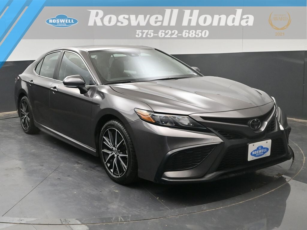 Roswell Honda has been proudly serving Roswell, Artesia, Carlsbad and Southeastern New Mexico for over 20 years. For more information on this vehicle please stop by the dealership at 2177 West Second Street or call us at 575-622-6850. This 2023 Toyota Camry SE is loaded with the following Factory Options:4-Wheel Disc Brakes, 6 Speakers, 8.0J x 18" Alloy Wheels, ABS brakes, Air Conditioning, Alloy wheels, AM/FM radio: SiriusXM, Apple CarPlay/Android Auto, Auto High-beam Headlights, Automatic temperature control, Brake assist, Bumpers: body-color, Delay-off headlights, Driver door bin, Driver vanity mirror, Dual front impact airbags, Dual front side impact airbags, Electronic Stability Control, Emergency communication system: Safety Connect (1-year trial), Exterior Parking Camera Rear, Four wheel independent suspension, Front anti-roll bar, Front Bucket Seats, Front Center Armrest, Front dual zone A/C, Front reading lights, Fully automatic headlights, Heated door mirrors, Illuminated entry, Knee airbag, Leather steering wheel, Low tire pressure warning, Occupant sensing airbag, Outside temperature display, Overhead airbag, Overhead console, Panic alarm, Passenger door bin, Passenger vanity mirror, Power door mirrors, Power driver seat, Power steering, Power windows, Radio data system, Radio: Audio, Rear anti-roll bar, Rear seat center armrest, Rear side impact airbag, Rear window defroster, Remote keyless entry, Security system, Speed control, Speed-sensing steering, Split folding rear seat, Spoiler, Sport SofTex Seat Trim w/Fabric Inserts, Steering wheel mounted audio controls, Tachometer, Telescoping steering wheel, Tilt steering wheel, Traction control, Trip computer, Turn signal indicator mirrors, and Variably intermittent wipers.